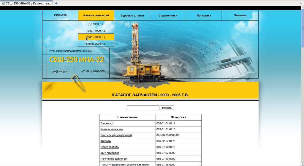 Сайт, посвященный одному продукту - буровому станку СБШ-250 МНА-32