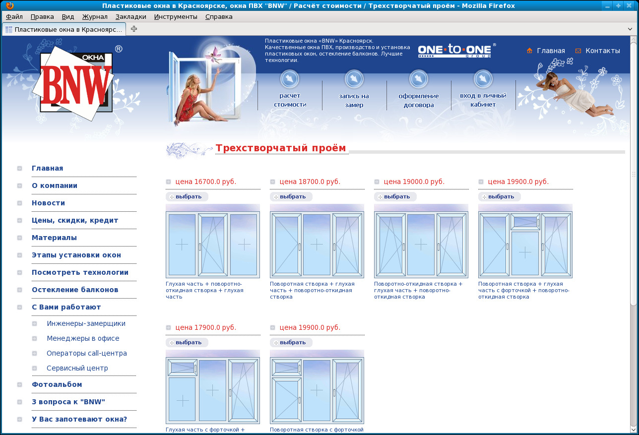 www.oknabnw.ru: Расчёт стоимости - выбор конфигурации новых окон