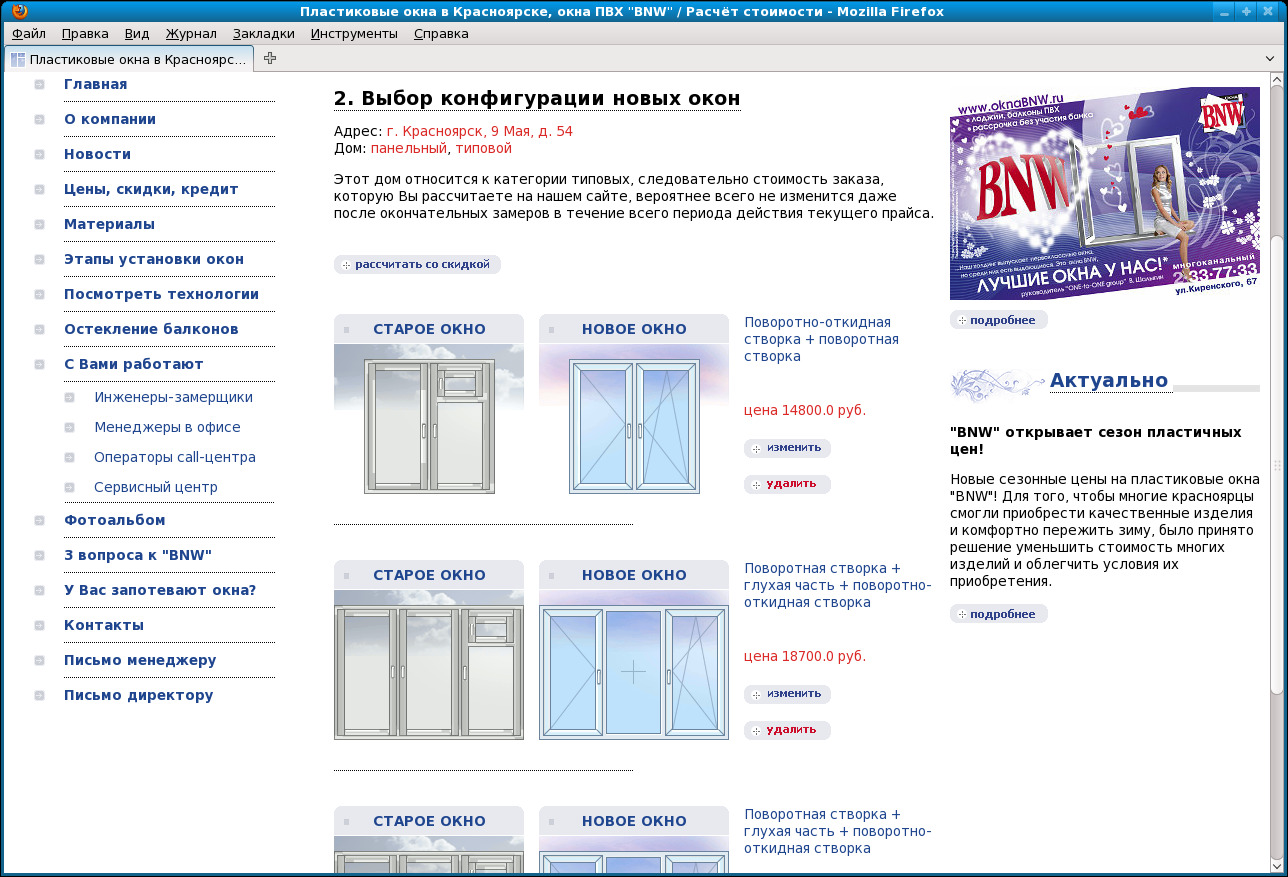 www.oknabnw.ru: Расчёт стоимости - выбор конфигурации новых окон