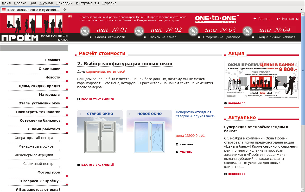 www.oknaproem.ru: Расчёт стоимости - выбор конфигурации новых окон